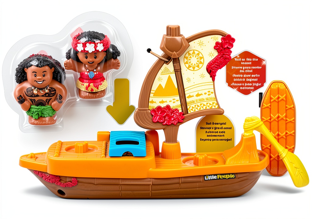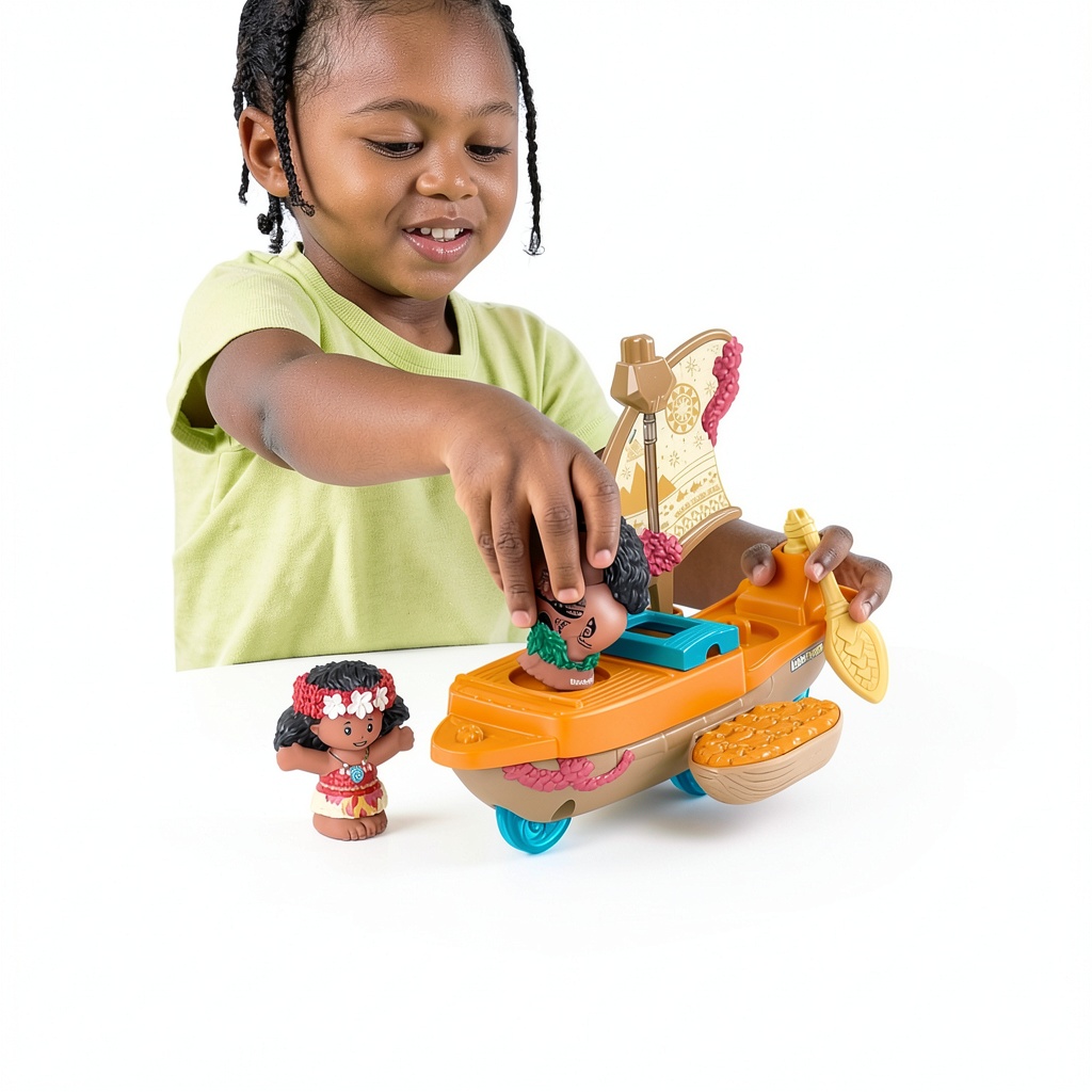 The Fisher-Price Little People Disney Moana and Maui toy sailboat set is an enchanting playset designed for young children. It includes a detailed toy sailboat with Moana and Maui figures, all crafted to fit perfectly in small hands. The boat features a rolling canoe design that creates wave-like motion when pushed, along with a movable sail and spinning oar for interactive sailing play. A surprise hatch reveals the hidden Heihei character, adding an element of discovery. Made with durable, child-safe materials, this set measures 4.09 x 10.51 x 6.77 inches and weighs just 2.12 ounces, making it portable for play anywhere. Recommended for children 18 months to 5 years, it supports early development through engaging, role-play activities.